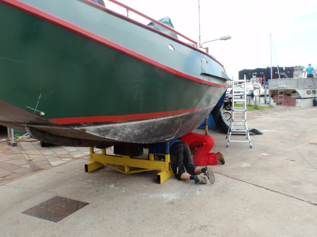 Rond een uur of 12 kwam de expert van de verzekering. Zij doen alleen in scheepvaart gerelateerde verzekeringen, zowel binnenvaart als recreatie en weten waar ze over praten. Het is dan ook gebruikelijk dat zij een ter verzekering aangeboden schip bezoeken als het op de wal staat om de staat van het onderwaterschip, de motor opstelling, evt gas installatie en afsluiters te bekijken, en daar advies op af te geven.