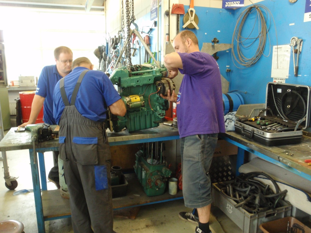 Toen alles geregeld was, konden we met de gebroeders Penta terug naar Amsterdam, om daar de nieuwe motor een plekje te geven in de loods. Die gaan we weer plaatsen als het motorruim geschilderd is.